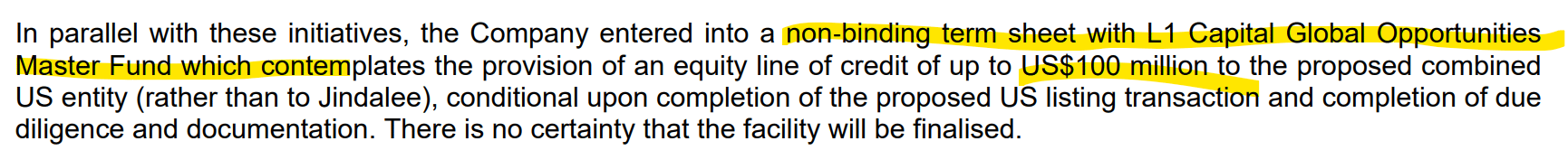 In simple terms, the structure likely works like this. L1 agrees to provide capital to the new US-listed company when it needs it. Each time the company draws money, L1 receives shares at a small discount to the market price. Because the shares are listed and liquid, the fund can usually sell them immediately into the market.