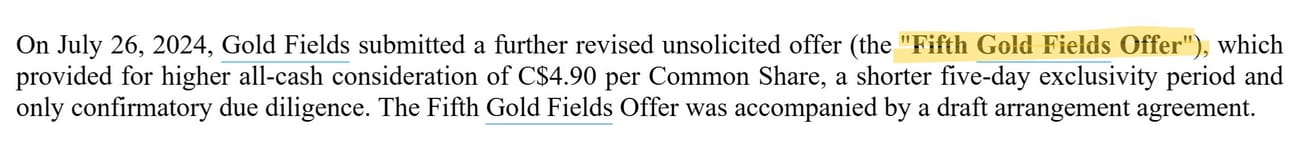 Remember last year when Gold Fields picked up Osisko with a headline premium of 55% at the time? Interestingly the information circular reveals Gold Fields upped their bid 5 times behind closed doors back then.
