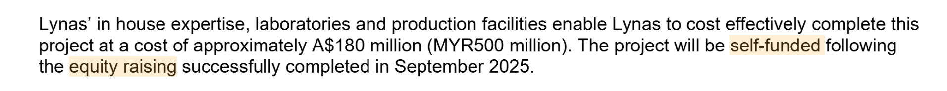 Plus, this from Lynas today. Self-funded with an equity raise…